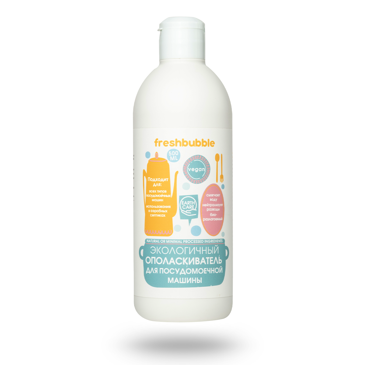 Экологичный ополаскиватель эффективно работает в жесткой воде: удаляет остатки и нейтрализует разводы моющих компонентов, предотвращает накипь и коррозию посудомоечной машины.